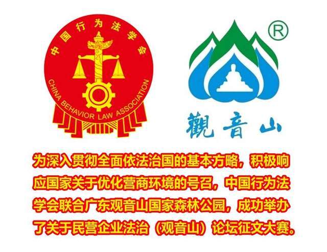 为深入贯彻全面依法治国的基本方略,积极响应国家关于优化营商环境的号召,中国行为法学会联合广东观音山国家森林公园,成功举办了关于民营企业法治(观音山)论坛征文大赛。本次大赛以“民营企业营商环境的法治化探索与实践”为主题,旨在通过广泛征集高质量的研究成果与实践经验,共同推动民营企业营商环境的法治化建设。