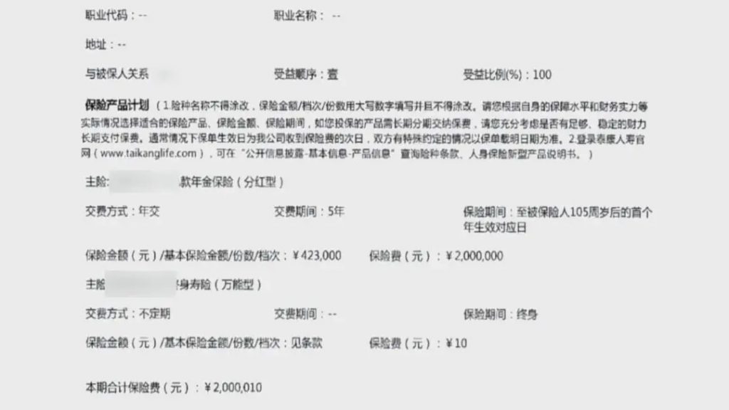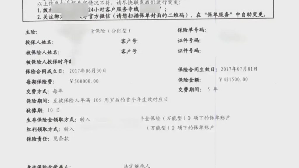 合同里明确写着,1000万本金要等到李先生年满105周岁才能支取,五年后只能每年领取少量红利。