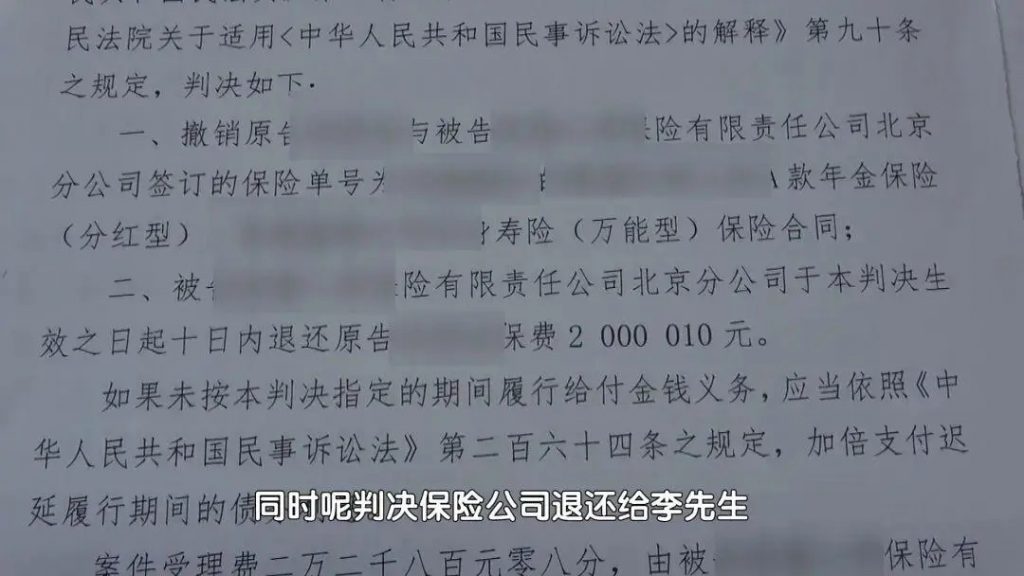 北京一男子花千万买保险,105岁才能取,要求退保遭拒,法院:保险公司构成欺诈,撤销合同,退还已缴纳的200万保费